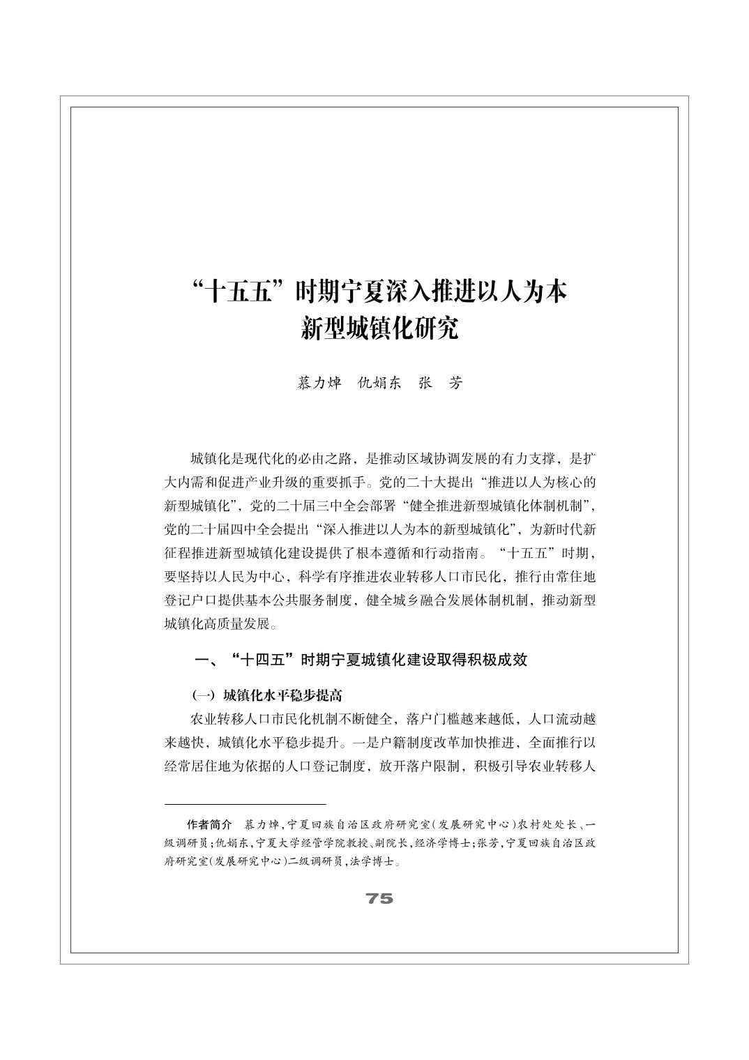 “十五五”时期宁夏深入推进以人为本新型城镇化研究